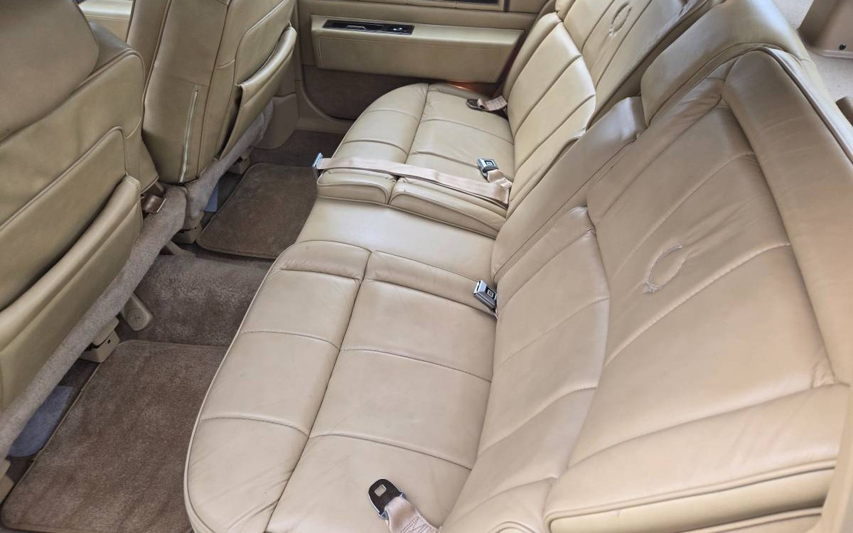 The interior looks like new, both front and rear. The leather seats look outstanding, and the two-tone dash also looks new. I’m guessing the steering wheel cover is there for comfort rather than to hide any flaws. Hagerty is at $5,600 for a #3 good-condition car, just as a reference.