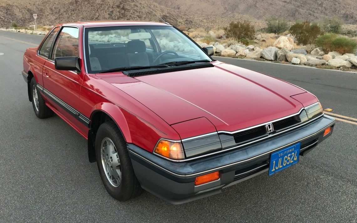 This Prelude is in largely original condition, and sports some optional OEM alloy wheels. The paint shines nicely, though the seller notes some clearcoat fade. The contrasting gray bumpers and red paint is a great look, even though it might be considered cheap by modern standards. The little lip at the edge of the trunk is all you need in terms of rear aero, and overall, the second generation Prelude is my favorite in terms of styling across all of the eras.
