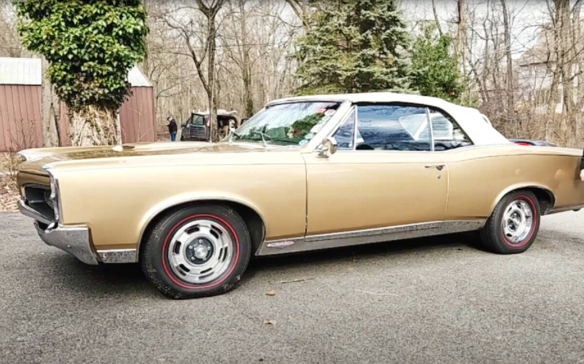 A replacement top from 1986 and paint from 1993 have held up well, and undercarriage pictures in the listing show nothing of grave concern. My parents’ GTO had the redline tires like this one.