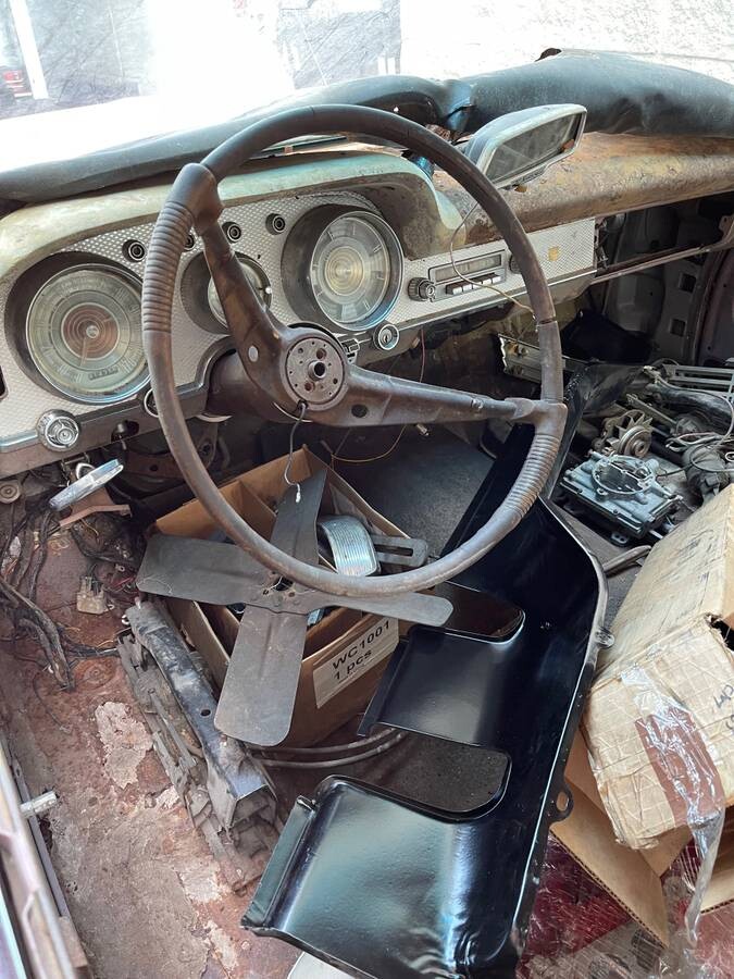 Unfortunately there is no telling if you’re getting everything to rebuild this one. That pile of parts inside the car spells nightmare to me. Also, where is the bench seat?