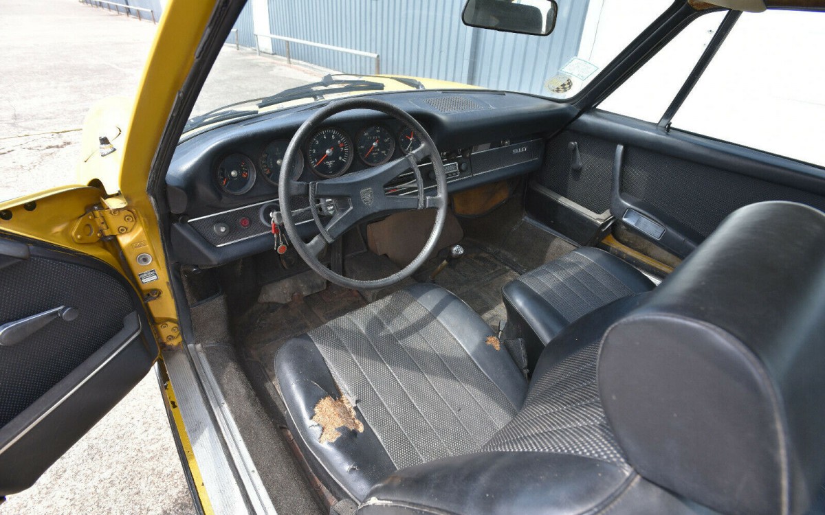 Love it or hate it, there’s no denying that the gold metallic color sprayed on this 911 is eye-catching. Personally, I love it! Unfortunately, this one needs some rust repair so you probably won’t be able to salvage the paint. According to the seller, the bottoms of the doors, rockers, and lower fenders are suffering from the nasty stuff. It doesn’t look bad in the photos, so some close-ups may be in order.