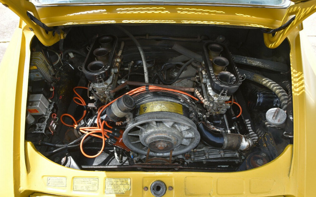 Another trademark is the air-cooled flat-six out back. The “T” in the emblem means that this is a base model car. It didn’t have as much power as the E or S, but was still enough to have fun! This engine hasn’t been first up since ’79 so plan on doing some work in here. It does turn over, but the odometer is showing over 100k so you’ll probably still have to crack the case.