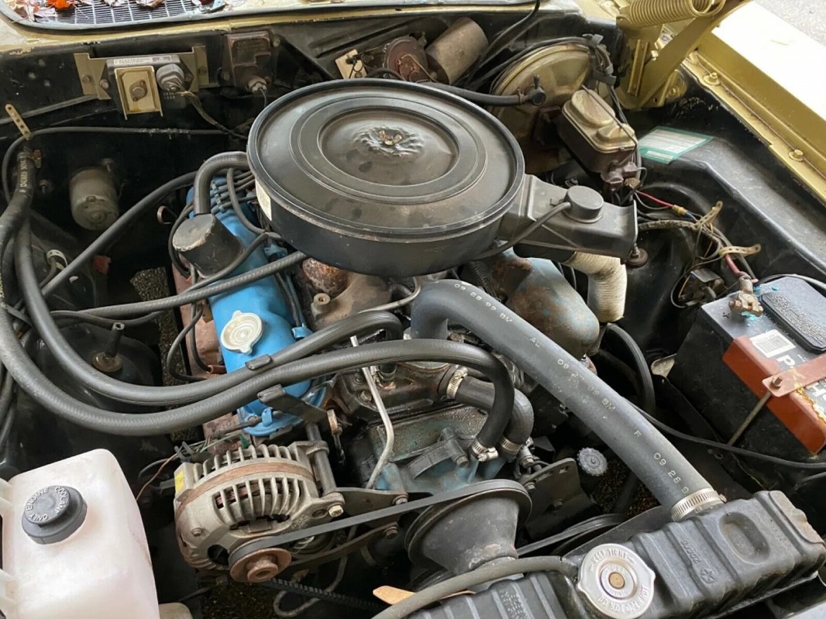 That first photo, where it’s under the Maple (I think) tree? THAT is a perfect example of what every seller should have in their ad! Beautiful! I like this car, but that interior is an assault on the eyes, maybe go all black. The gold color goes nicely with the black vinyl top. I would be tempted to change a lot on this one, but I think just build the heck out of that little 318, or pull it and put it on a stand somewhere and go with a 340… I guess I would even leave the auto so as not to change too much. I think this is a nice car for the current bid.
