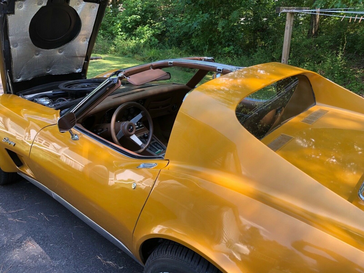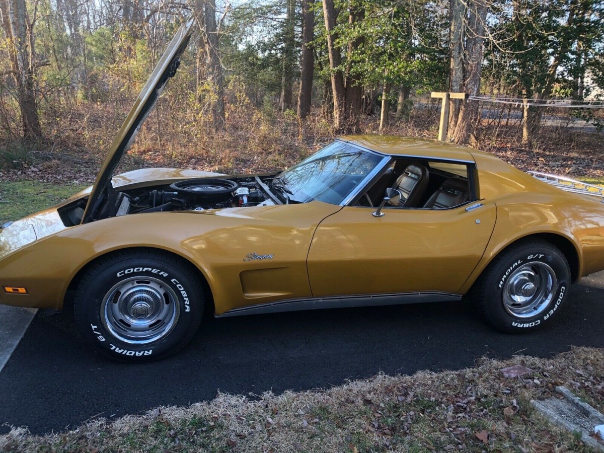 You’d better hurry if you want this beautiful 1973 Corvette as the opportunity to buy it will be gone in less than a day! It’s listed for sale here on eBay where a couple of bids have bumped it to over $15,000, but the reserve has not yet been met. Offers are welcomed, though, so who knows what it would take to make this golden beauty yours? Although the car is currently in Ocean View, Delaware, it’s an Arizona car and therefore is said to have no rust!