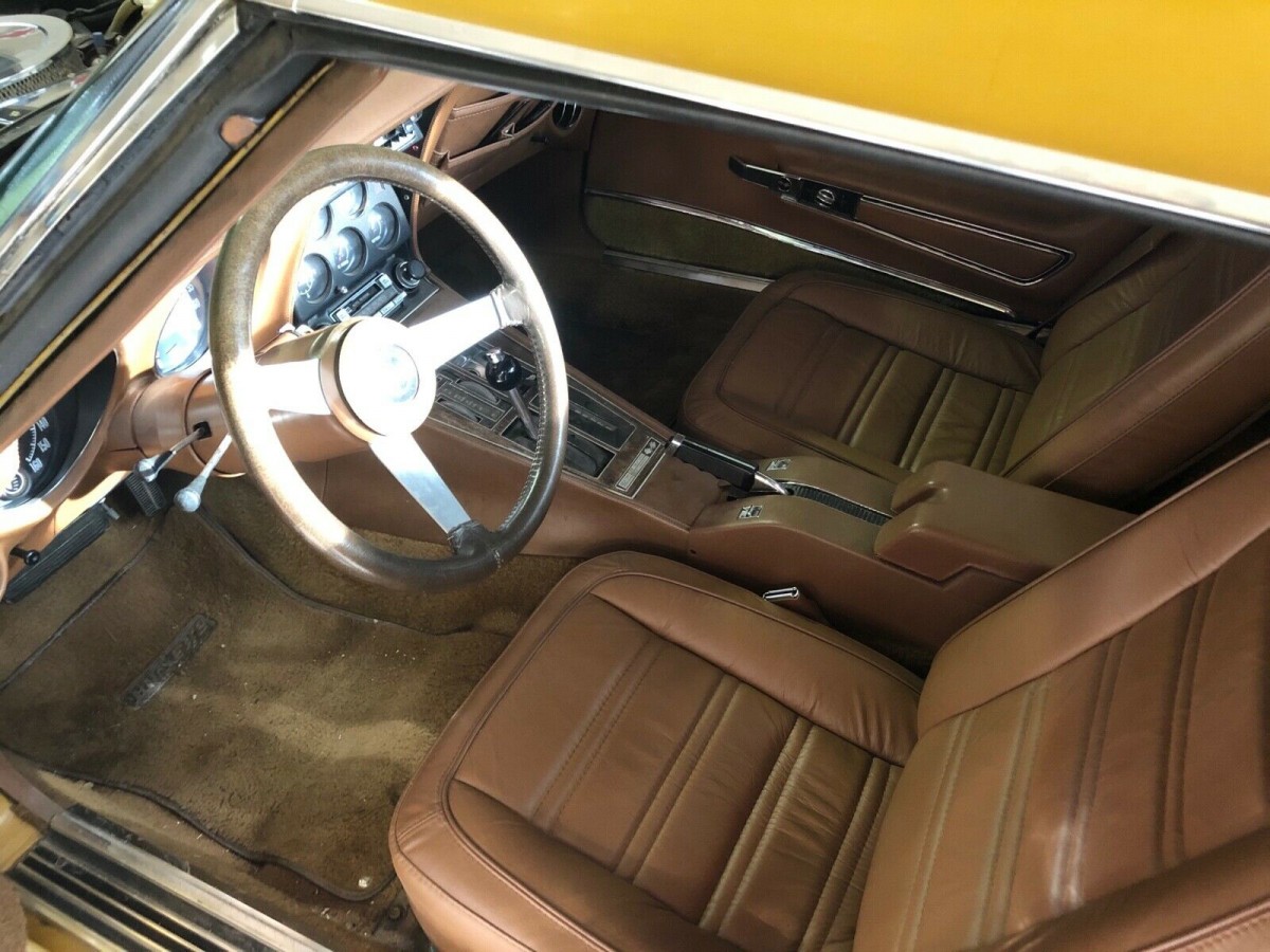Sure looks comfy to me! Of course, by 1973 the C3 was becoming a little dated, and performance certainly suffered due to EPA regulations, but I don’t think the present buyer of a classic like this really cares about every last horsepower. And there’s no denying you’ll turn heads with this gorgeous, “look at me” color!