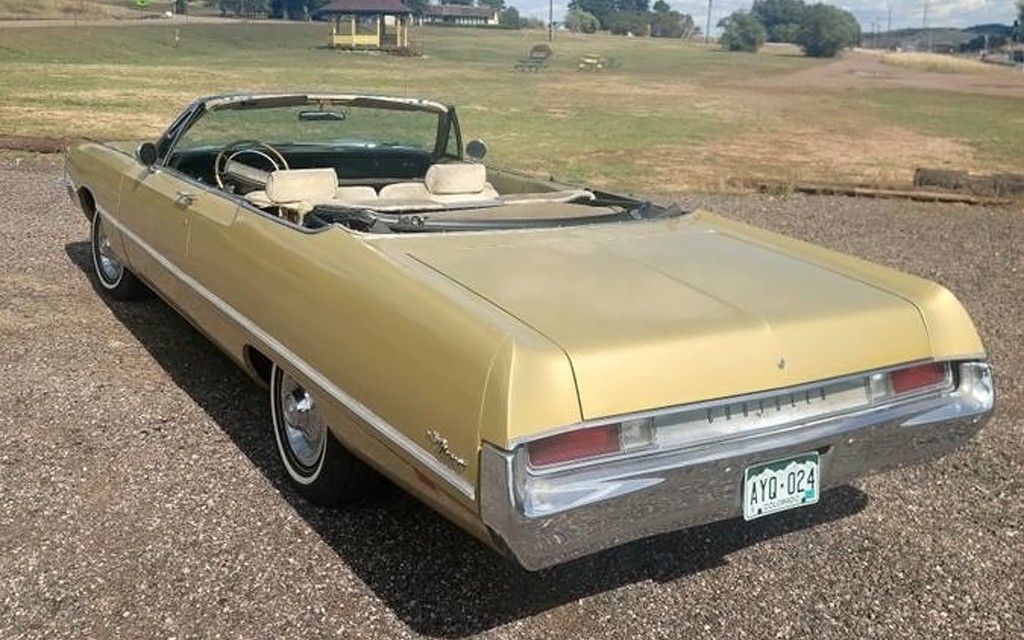 The seller of this 1969 Chrysler Newport Convertible refers to it, or her (?) as Goldie and says that she’s fun and well-mannered. I’m not someone who names my vehicles but I can’t think of a more fitting name for this big cruiser. They say that it’s all original and unmodified, and they have it posted here on craigslist in Monument, Colorado. They’re asking $8,900, here is the original listing, and thanks to T.J. for sending in this tip!
