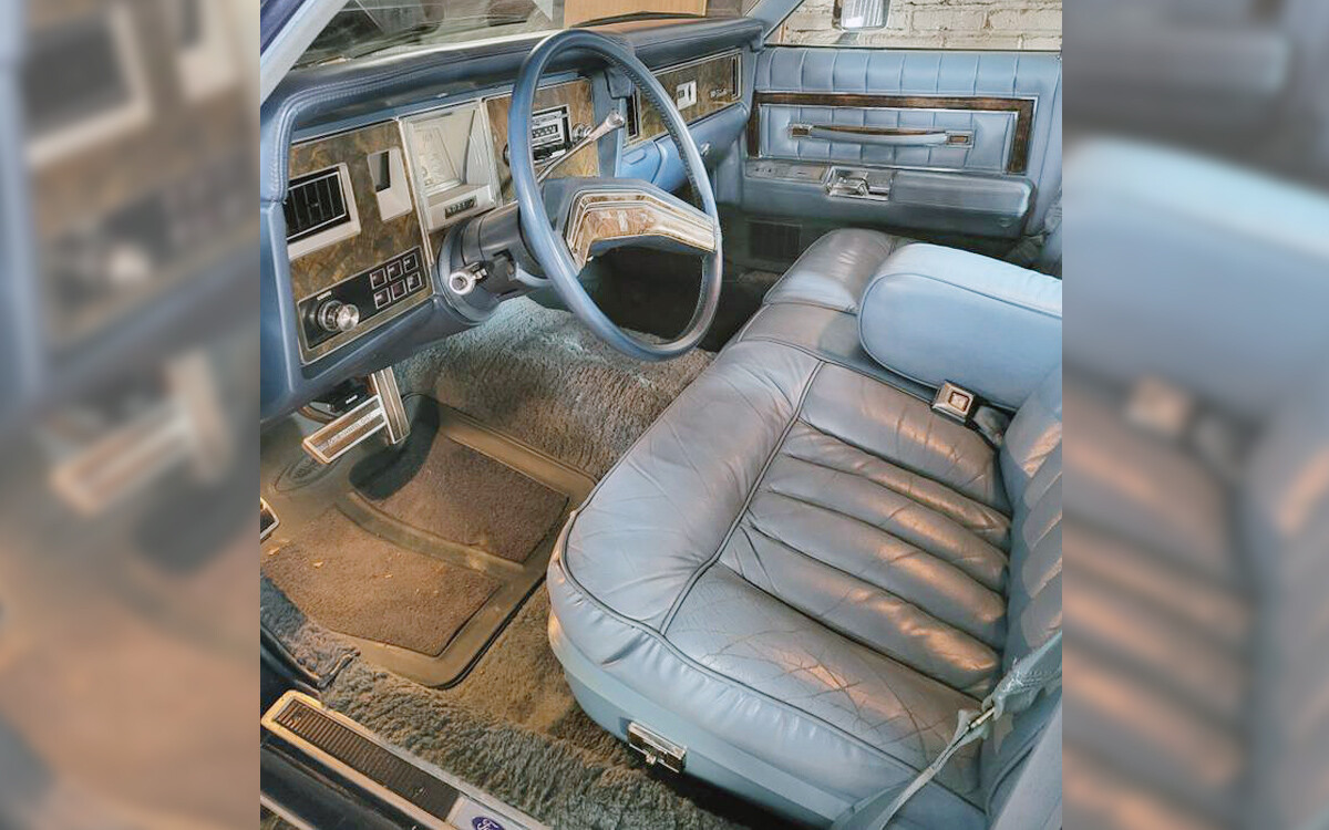 The interior looks as nice as expected here, with maybe some wear and grime on the thick carpet. I’d want to take out those seats and remove the carpet and deep-clean it, but that’s just me. The optional Wedgewood Blue leather seats look good both front and rear, and the trunk looks appropriately luxurious. The seller mentions a few areas that need work, including the clock, both front power windows, parking brake, power antenna, and the fuel gauge.