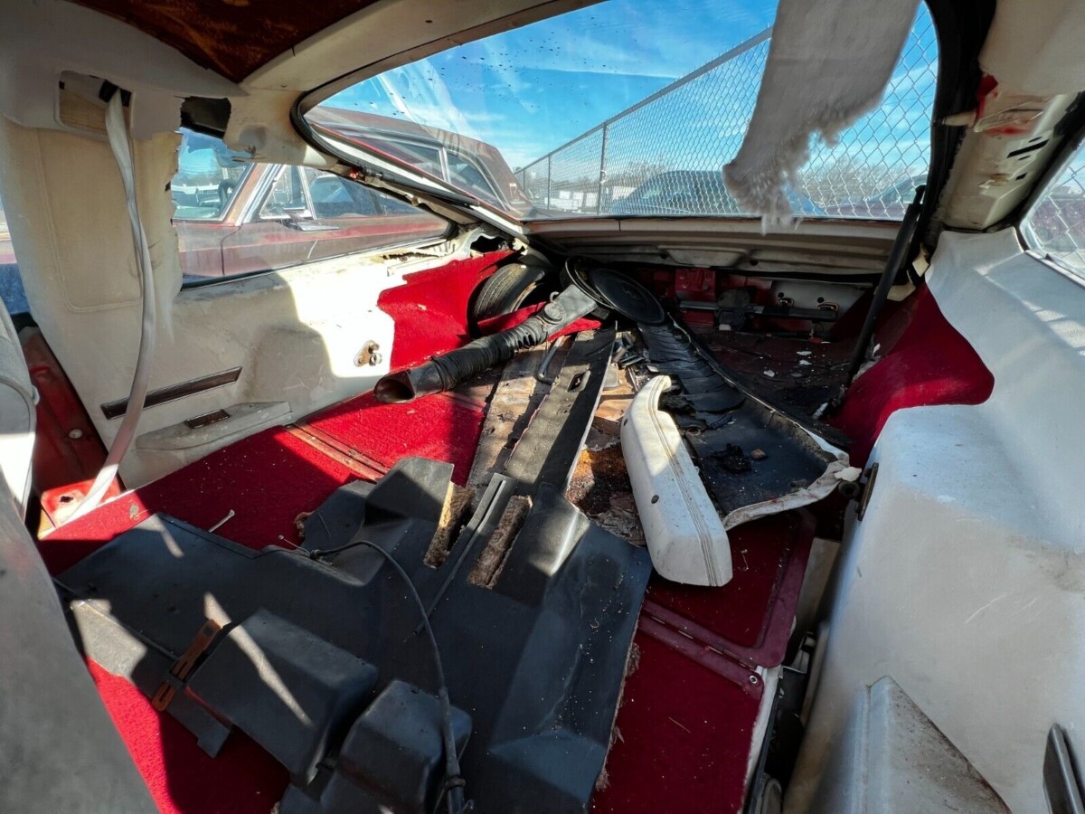 It’s hard to tell what’s happening with the V8 and automatic transmission as the cable to pop open the hood isn’t functioning. The indicated mileage is 64,000 which would normally mean there would be life left. But since the car has been left to the whims of Mother Nature for an undetermined period, the condition of the powertrain must be considered a crapshoot. Even transporting this Oldsmobile will be a challenge as all the tires are flat and may not hold air. Is this a car you would try to restore, use for parts, or take a pass on?