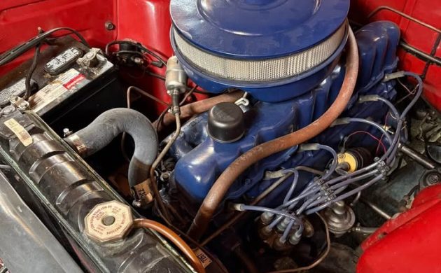 Unfortunately, the seller gives us little to go on in the advertisement, saying that the Ranchero is in “good cruiser condition” with a “clean Ohio title” in his name. It does have a six-cylinder with a three-speed-manual transmission, and in 1960, that six would have been the only engine available (according to my materials), a 90-horsepower 144-cubic-inch “Falcon Six.” One way to tell one Ford engine from another in the 1960s was to look at the air cleaner and valve cover colors; in 1960, those were painted blue on the 144. The engine block, however, should be black, and while this picture doesn’t quite make that clear, the block appears to be blue. Therefore, it could be just about anything; it would be worth a message to the seller if you’re truly interested in the truck. I don’t think anyone would be upset if it were a 200 from a later car; maybe Ford aficionados could highlight small differences in this engine family in the comments.