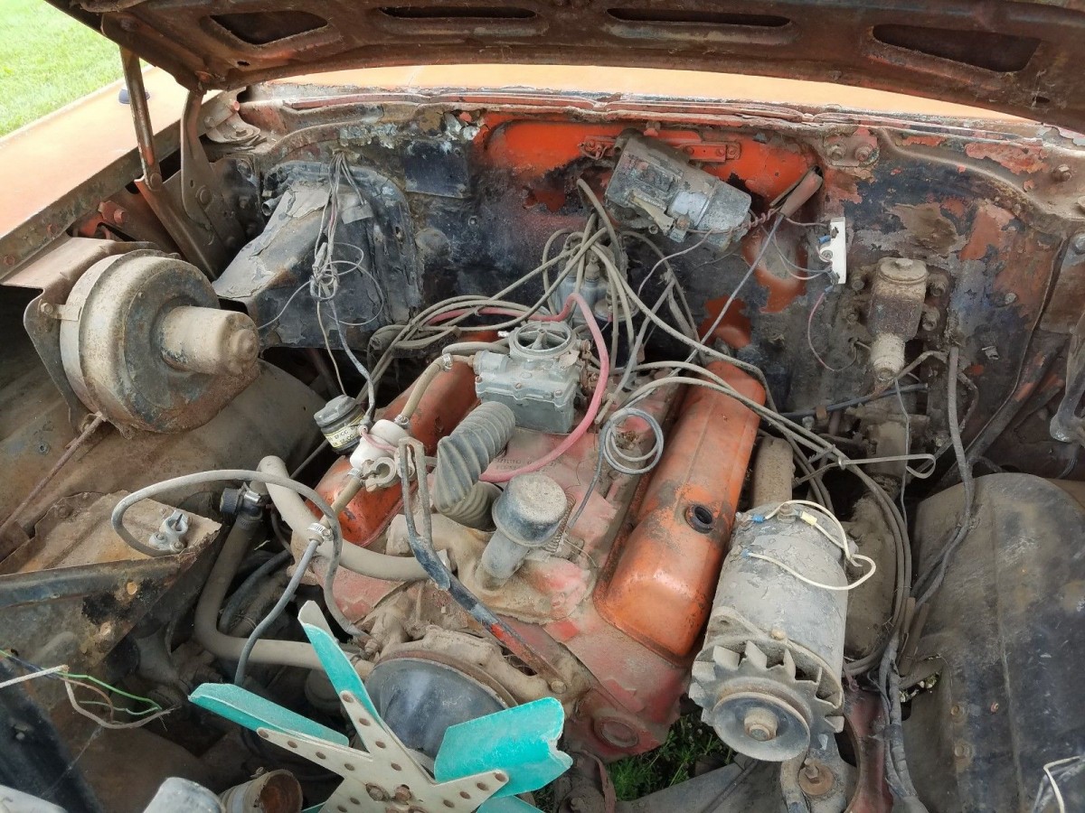 The interior clearly needs some work, as the seats have been replaced with a pair that look like they belong in an 80s Chrysler product. The backseat may be the original assembly. The seller notes that the Nomad has good, solid floors, and body mounts. Rust is noted as being limited to surface spots mostly, though there are some areas with “little holes” noted. More photos of the interior would be helpful to ascertain the condition of details like the carpet and dash.
