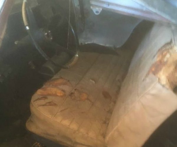 Inside, disorder is the order of the day. The seat is there, and it looks like there is enough of the original leather to make a pattern for a replacement. The dash is there, but all of the items that are supposed to be bolted to it are not. The owner does not mention whether or not he has all of these pieces, and finding all of them if they are missing would be possible, but difficult and expensive. This is the problem with dealing with a torn apart car. You have no idea how to put it back together unless you have intimate knowledge of the particular make and model you are working on. Even if the owner kept all of the parts, time has a way of helping little bits and pieces wander off.