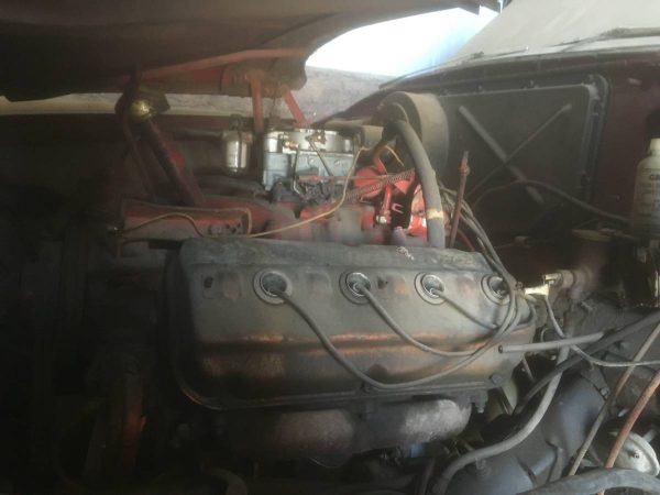 The best part about this deal is the engine. It appears to be all there, and the owner states that he has both the single carburetor manifold and the rare dual carburetor manifold for this car. It even has the desirable “bat wing” air cleaner for the dual carburetor setup. The engine appears to be in good shape, but would certainly need a freshening up both inside and out under the best circumstances.