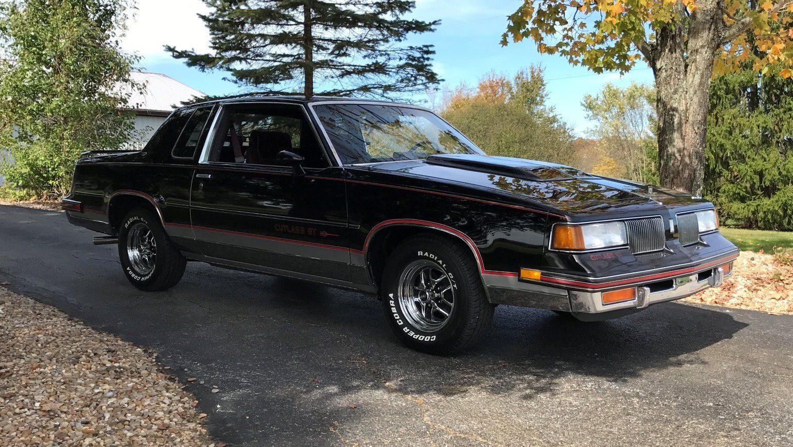 I had an 86 442 ,black with a red gut like this one.These were nice cars ,the 307 ended up with a rod knock so i swaped out a 350 rocket out of a 75 cutlass supreme. Pretty much everything from the 86 motor ,pulleys ,brackets,etc bolted onto the 75.I sold the car to my buddy’s kid and I still have the 307 taking up room in my barn .I never heard of a GT but I like it