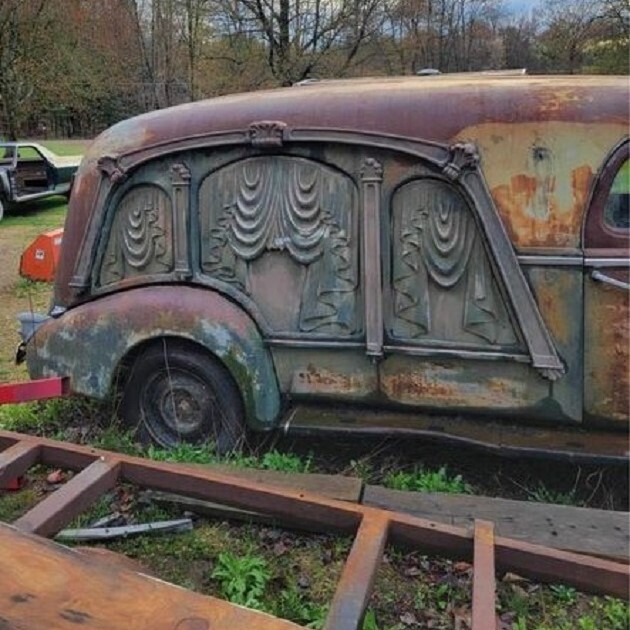 There is a similar hearse (IIRC it’s on a Packard chassis) in the Chicago suburbs with the sculpted side panels, it’s amazing to see in person! This definitely should be restored!