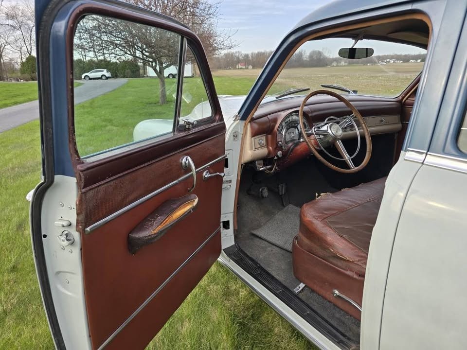 Now in its third year of production, Chrysler’s “Hemi” engine, in this case a 180 gross HP, 331 CI V8, is powering this family hauler. The seller adds, “Good running car, just had a tune-up. Brakes just gone through,” though I’m not sure what “gone through” means in reference to the brakes – does it mean inspected, adjusted, parts replacement, etc.? According to 1953 Chrysler marketing material, two transmissions were offered that year on New Yorker models, the new for ’53 “Fluid Torque Drive” and the “Fluid-Matic” – AKA “Fluid Drive.” The seller adds, “Has a clutch pedal for anytime the transmission is shifted between reverse, power, or driving.”