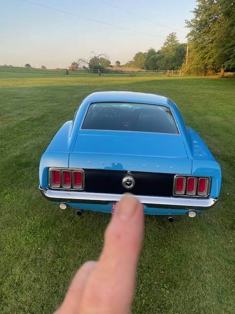 I had one the same color in 1985 or ‘86. It was definitely a plain Jane mustang with a 302 and black stipe and blackout panel. But hey it was paid for and it was a Mustang. Like the 69’s better because of headlamps,quarter scoops, roof medallions and taillights.