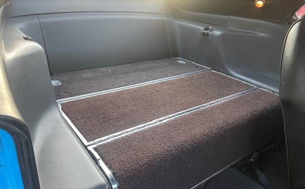 The interior looks clean, with standard high-backed bucket seats and no console for the floor shifter. A 302 Mustang would have the C4 automatic, which came standard with 2.79:1 gears out back. It’s a peppy little cruiser and nothing more. And that’s fine.