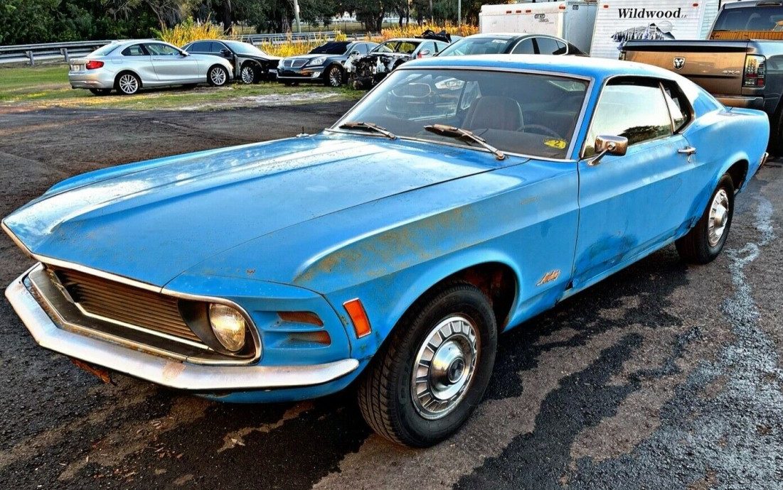 By the 1970 model year, every major U.S. automaker had gotten into the “pony car” game, with the Dodge Challenger being the last to join the party. As such, the so-called founder of the movement, the Ford Mustang, saw its sales as a shadow of its 1966 peak – but still quite respectable at 190,000 units. The cars received their first major restyle in 1969-70 but still used the same platform as they began with a half dozen years earlier. This ’70 Mustang fastback looks to have been off the road for a while, with few details provided by the seller. It will need restoring but is said to be complete. Located in North Port, Florida, this old Ford is available here on eBay where the bidding stands at $10,200 (no reserve).