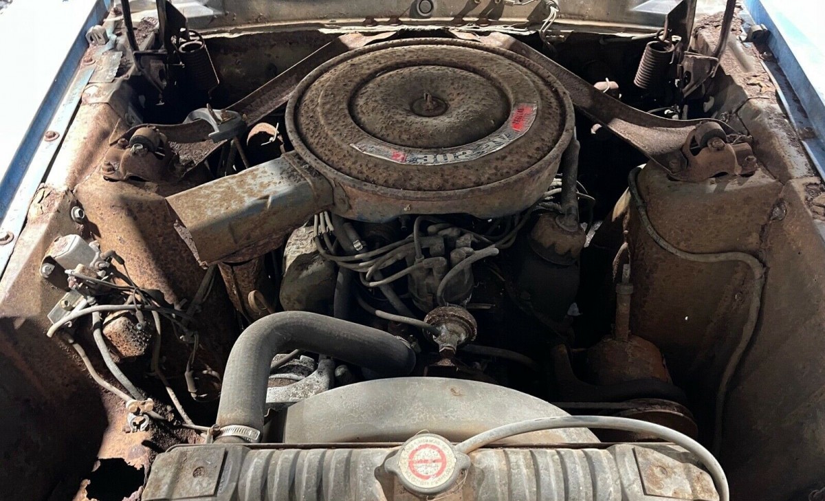 Under the hood of this car resides Ford’s trusty 302 cubic-inch small-block V8. With a 2-barrel carburetor, it would have been rated at 210 hp, the year before engines began the detuning process for lesser emissions output. At 86,000 miles, it’s likely the motor or automatic transmission have ever been taken apart, but since the car doesn’t currently run (the engine does turn freely), what it will take to get it going again is unknown.