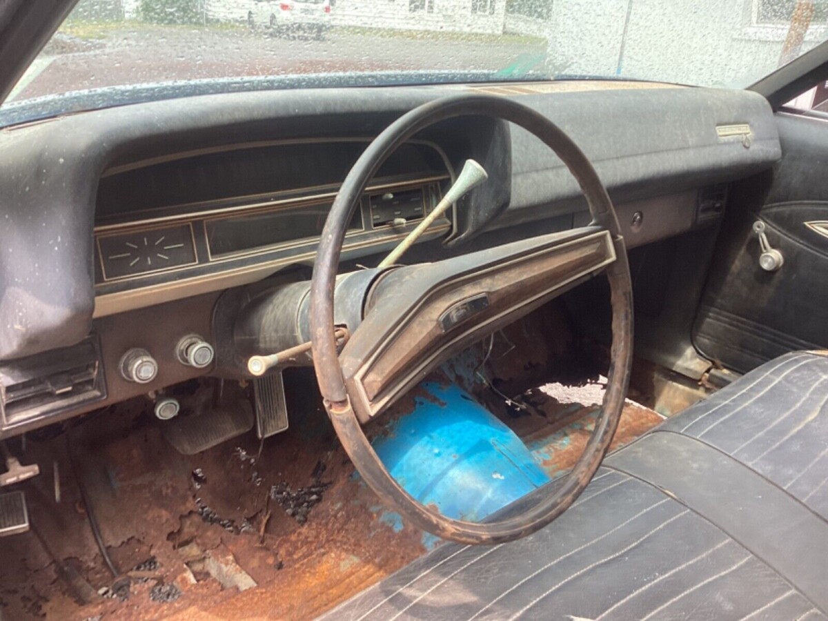 If you were to take this roller home with you, which route would you go on? Put back in a middle-of-the-road engine/carburetor or go crazy with a period-correct 429 big block? The interior is going to need some work, so would you jettison the bench seat in the front for buckets with a console? Whatever direction you decide to go in, you’ll do it without a title. The car is being sold only with the notarized bill of sale.