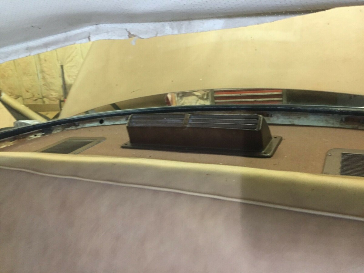 While the eBay listing sometimes refers to this as a New Yorker, it’s a Windsor. But given the level of trim on this car, the differences have to be minimal except for the engine (the New Yorker had a 354 Hemi V-8). The seller found this car in Texas last year, shipped it to Maine, but registered it in New Hampshire. The body is straight and the frame good, but there is some rust present in the quarter panels and trunk. The floor have previously been repaired. All trim is present and sound, while the bumpers rate either fair or good, depending on which end of the car you’re looking at. The tail light lenses are dry and cracked, but the glass is all good. The gold/white paint combination are not original colors, with traces of yellow and blue apparently under the gold.