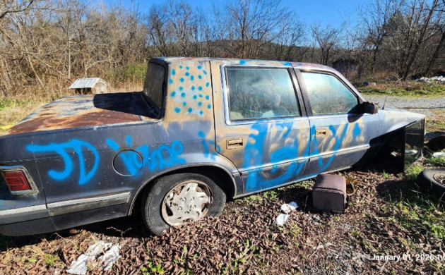 The Dodge Dynasty was one of the largest variants of the Chrysler K-Car, in production from 1988 to 1993. It employed front-wheel-drive, a V6 engine, and was considered a mid-size car by size and weight. This 1990 example of the Dynasty was abandoned on the seller’s property, and vandals have had their way with it, adding graffiti in ample portions. This Mopar would be an ambitious and costly project for a restoration, so the seller suggests using it as a parts car or a Demolition Derby candidate. Located in Alexandria, Tennessee, this colorful mess is available here on eBay, where just a single bid of $1.00 has been cast ($420 gets to take it home today).