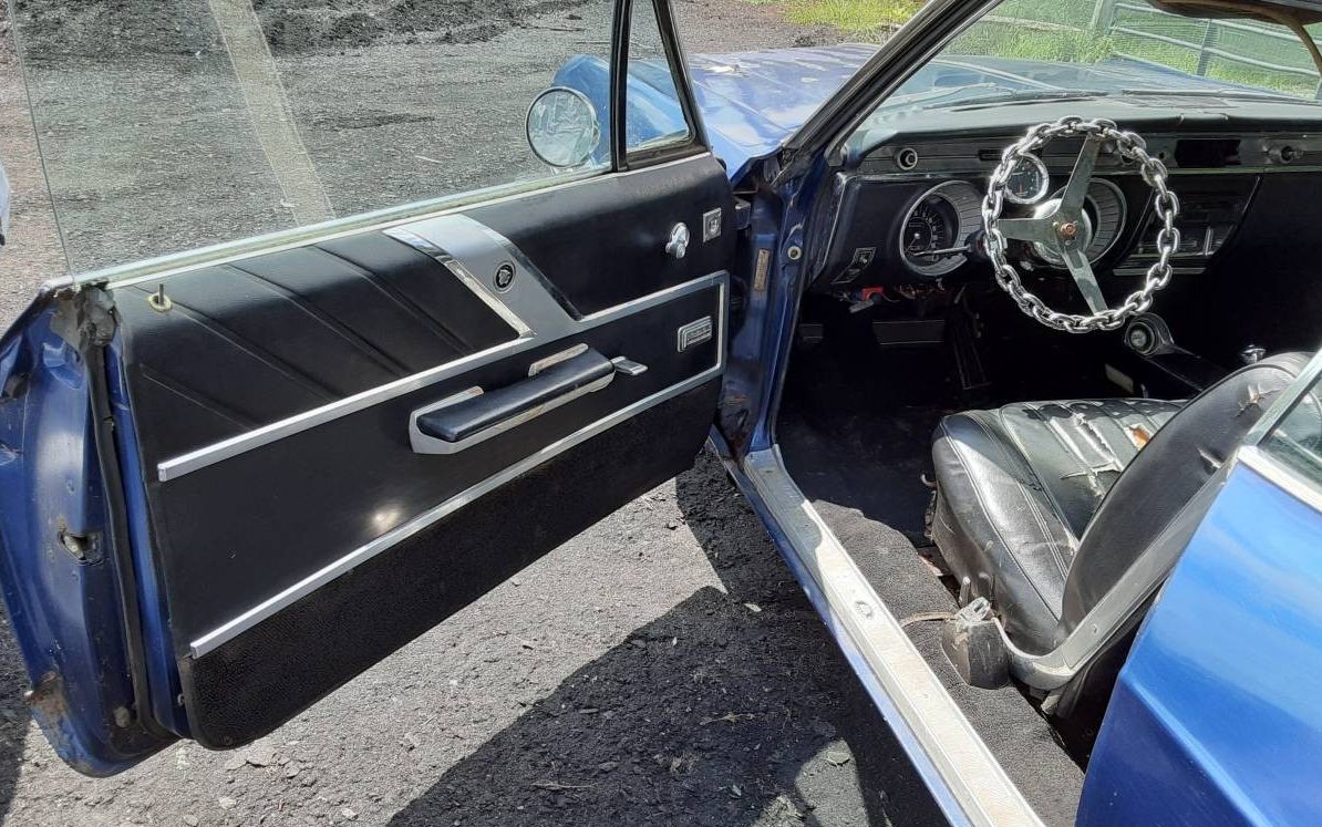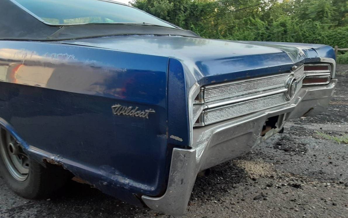 This Wildcat, unfortunately, has been catting around outside for a long spell as the body is showing the effects of New Jersey winters. The seller admits that this Buick, “Needs some bodywork”. It is stated as being a very solid car but that driver’s side quarter would make me want to take a good, long, look upside, downside, topside, and underside. The trim is typically worn looking and the finish is faded and shedding its clear coat. The color appears to be a more recent, non-original shade of blue. There are scrapes and scratches but the visible rust is the most obvious concern.