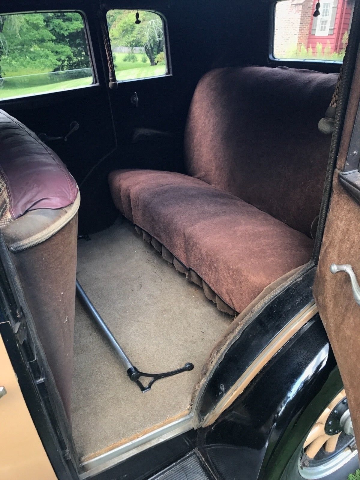 The back seat looks like a place one could stretch out and be comfortable for a good long while. The upholstery looks serviceable but needs attention. The carpet looks plush but likely not original.