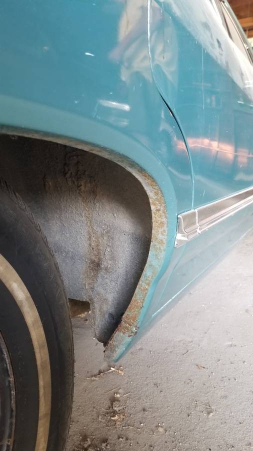 The seller of this Impala is only the car’s second owner. The first owner was his grandfather, and the owner inherited the Impala when his grandfather passed away. He is now in a position where he needs to sell it because it’s stored at his grandmother’s house which is about to be sold. The seller claims that the Impala has only covered around 27,600 miles, which may well be true if the rest of the story checks out. He also states that the car still rolls on its original tires. The body appears to be in pretty good condition, with no obvious signs of rust or rot. The seller apologizes for the photos and is going to try to get better ones. I will admit that I’ve been staring at the matter on the lip trying to work out whether that is dried dirt or corrosion. Anyone want to hazard a guess?