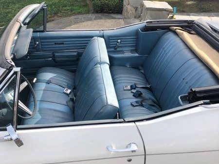 This convertible has not been modified in any way. It is finished with a white body, white top, and blue vinyl interior. The previous generation Chevelle was on a 115-inch wheelbase, but beginning with this one, the two-door coupes, hardtops, and convertibles rode a shorter 112-inch wheelbase while 4 door models and station wagons rode on a 116-inch wheelbase. This car has the optional rally wheels.