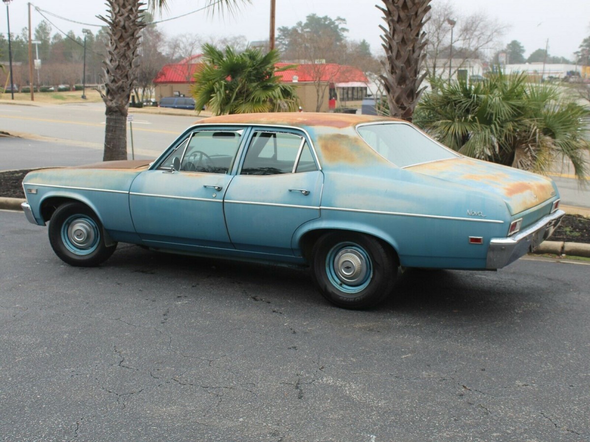 The 10 foot appearance isn’t too shabby on this Nova with the worst being the visible surface rust. This Nova would be stunning with a fresh paint job and the interior spruced up. Thankfully the body appears nice and straight with no evidence of rot, at least on the exterior body panels. A light weight restoration would really make this 4 door Nova a beauty that would be sure to be appreciated at car events. Are you a fan of this 4 door Nova?