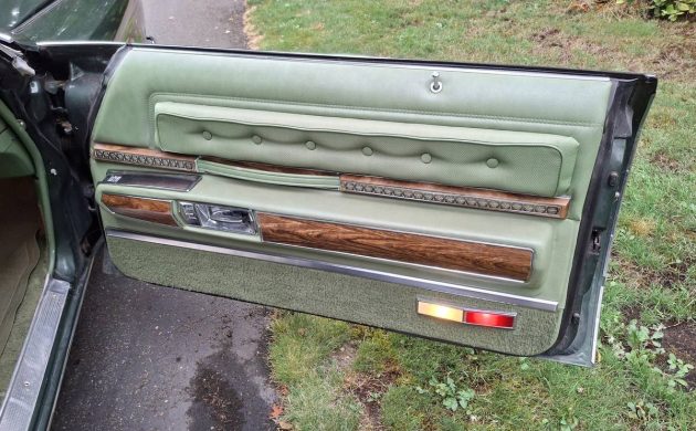 All is not perfect with grandmother’s Oldsmobile, as the plastic bumper fillers have begun their inevitable decline, and there’s a scuff on the driver’s fender that isn’t terribly noticeable. The seller says that it has “never been wrecked or modified,” and “is a perfect car for restoration for next season’s car shows.” I’m not sure that anyone will do an out-and-out restoration of this big Regency, but it certainly would look nice with some correction on its pretty “Balsam Green” paint. And with that well-cushioned interior, you’re bound to be the hit of the next car show, whether you restore the car or not.