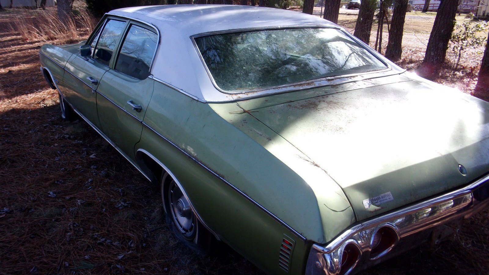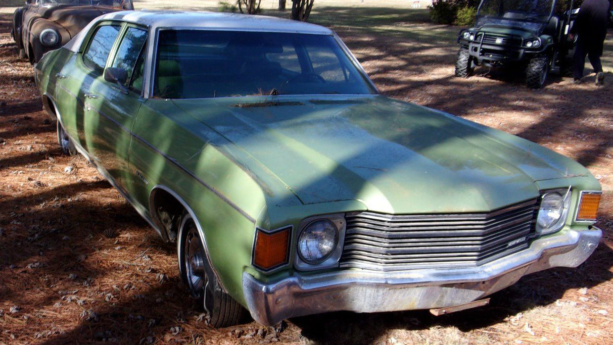 I’m having flashbacks to when my dad would pick me up in high school in the late 80’s in a ‘71 sedan the same color as this, which later was repainted emerald green but hardly an improvement. I didn’t mind the green but OMMFG the sedan variant is horrendous! I was so embarrassed and would have rather walked home. To make matters worse, one of my friends knew I hated that car and would purposefully announce “hey there’s your dad in that green Chevelle” just to add further insult to injury. I always felt like my adolescent years were robbed of something great because it wasn’t the cooler and much better looking 2-door. As slickb stated, this is only good for the front clip. Strike a match to the rest!