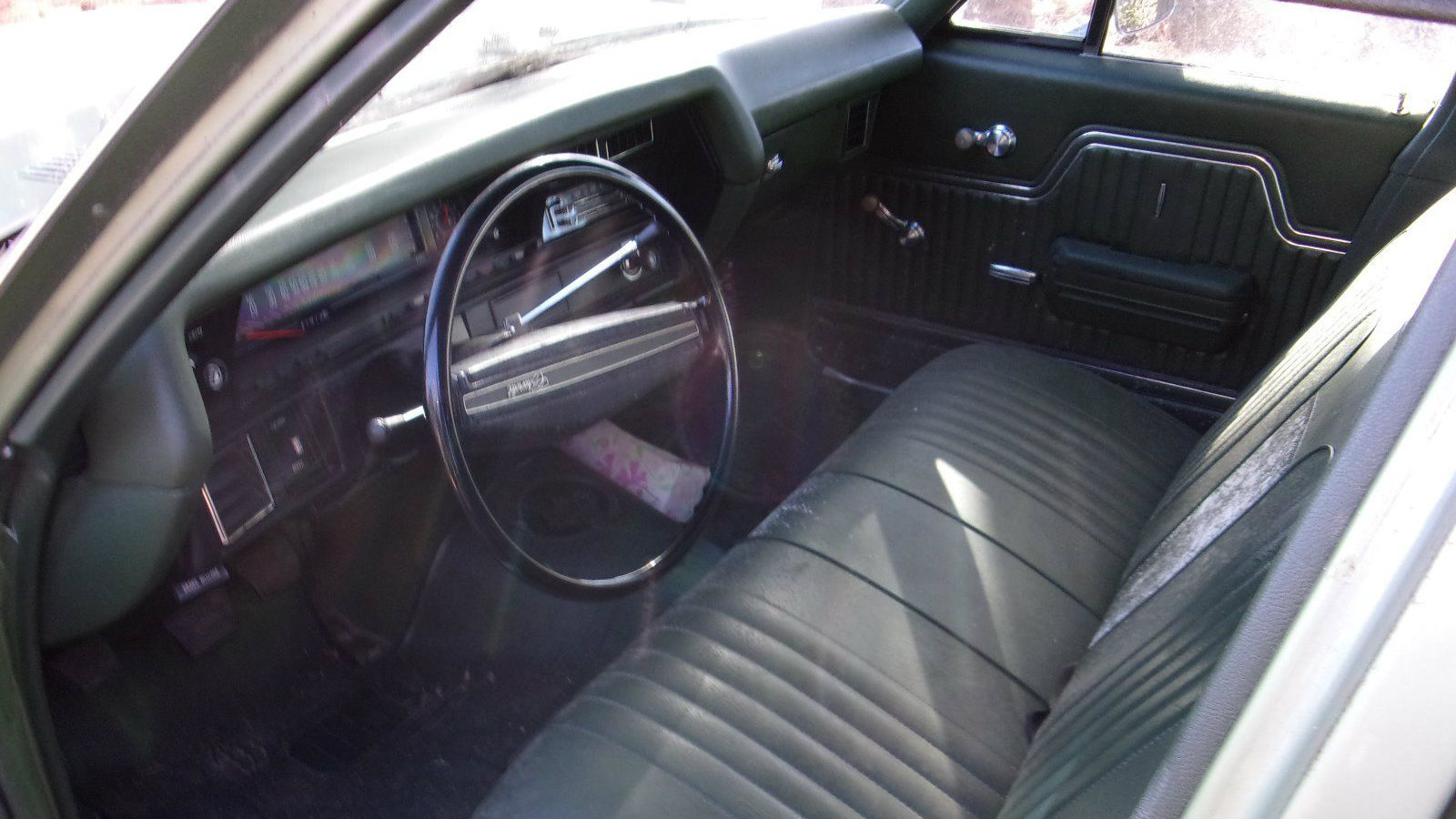 The interior isn’t perfect (there’s some mildew in there based on some other pictures) but once it’s cleaned up it would be very serviceable. Is that really an uncracked dash pad? And lo and behold, that’s a clutch pedal. Yes, this is actually a “three on the tree” car — effective theft prevention in today’s world!