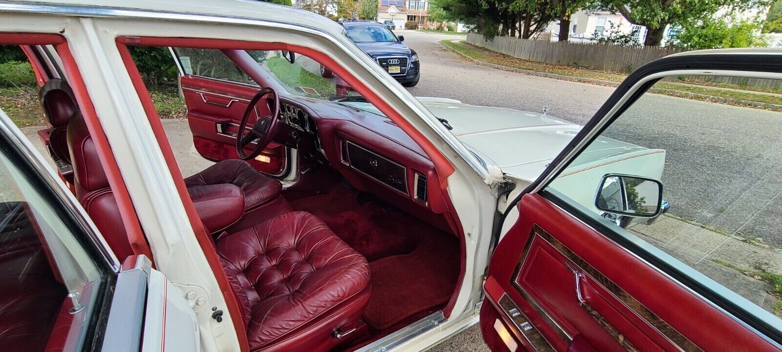 Look at that interior! The seller’s description is spot on, noting that it mimics the one you’d “….find in your Italian grandmother’s living room (not the one you sit in, the one for company).” The tufted leather is in outstanding condition, and I can’t imagine too many 5th Avenues came in this color scheme – it’s too racy! The lipstick red door panels, carpets, and leather upholstery point to an original owner who had very specific requests when ordering his luxury sedan.