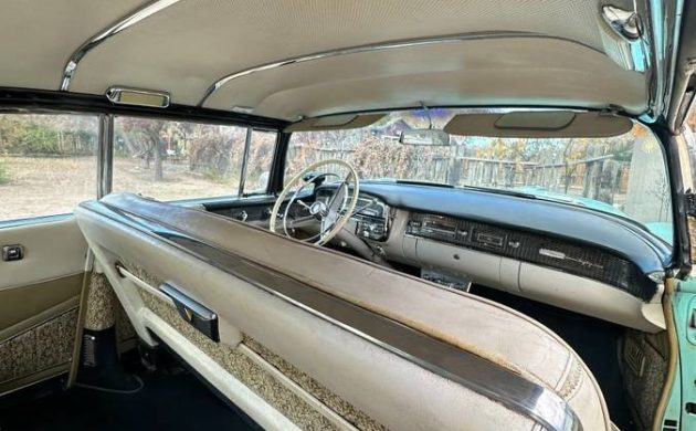 Two-door pillarless “hardtop” coupes were popular in the 1950’s when they were new and have remained so as collectibles all these years later. I get it, because they have a sportier look that can enhance a car’s proportions and lines. In 1955, GM introduced the four-door pillarless hardtop concept to their Oldsmobile and Buick lines and the buying public liked it. So for 1956, four-door hardtop models were everywhere within the Big Three lineup and even some independents. GM stylists really knew how to make a four-door hardtop roofline look sporty, even on a luxury liner like this that is 221.9 inches in length. Here’s an interesting unrestored survivor that’s been in a family since Grandma bought it from Galles Motors in Albuquerque, New Mexico nearly 70 years ago.