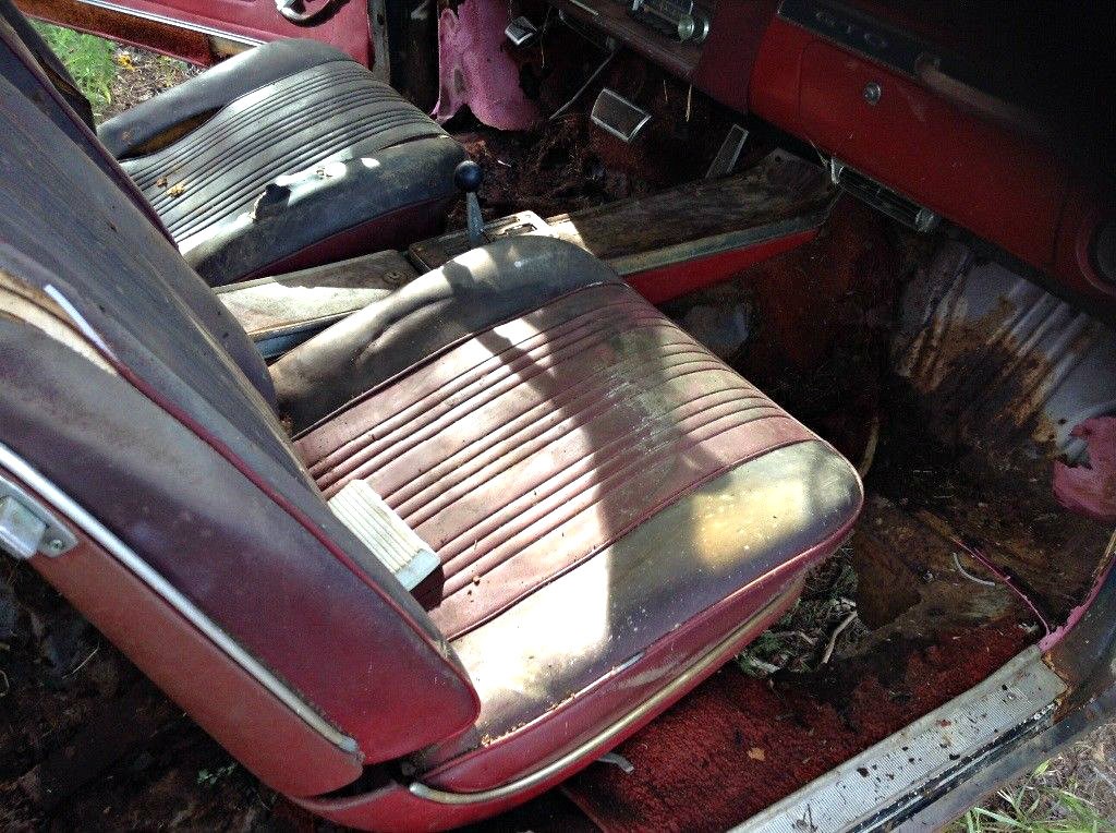 Once a black on red stunner, this GTO has been out of commission for a while and appears to be missing its drivetrain. The seller hasn’t come right out and said it, but the past tense mention of it having power steering and power brakes seems to confirm the lack of drivetrain. Inside there is still evidence of the original interior, although it is on the rough side. The carpet is still a bright shade of red, but unfortunately you will not being using it again. The dash shows several cracks, and the seats while mostly complete do have some cracking and rips.