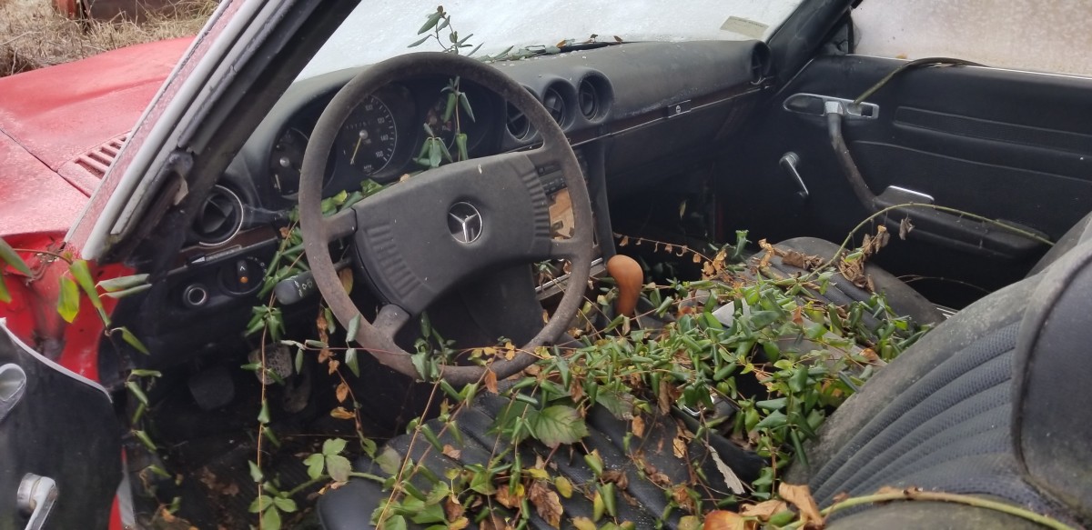 The cost of repairs outpaced the SLs value at the time. So what we’ve got here is a broken, abandoned, neglected car. Awesome.