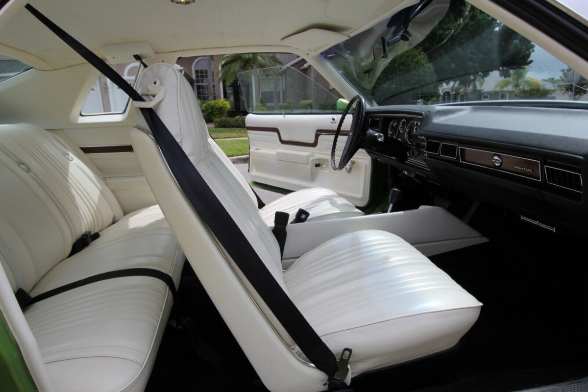 The seller doesn’t wax poetic about this car’s history, but it must have been a good one. The bodywork appears to be pristine, and whether those old-school Florida plates indicate life-long Sunshine State residence isn’t confirmed in the listing. Other tell-tale signs that this LeMans has been loved include the perfect vinyl top, the nicely preserved chrome bumpers, lustrous taillamp lenses, and OEM mudflaps still attached. There’s a lot to like here, even if the LeMans as a model wasn’t all that desirable in 1976. This one is extra appealing thanks to a generous list of recent maintenance items detailed in the listing.