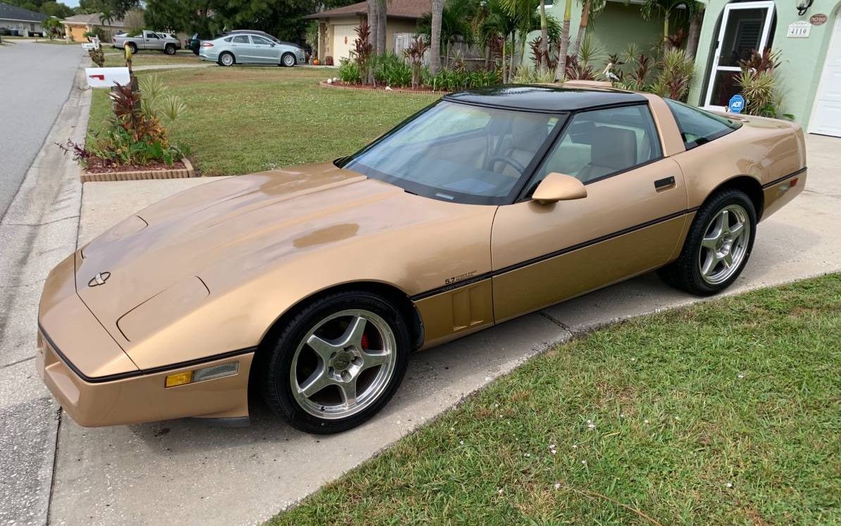 There were only 777 gold ‘Vettes built in 1986. Too bad about the (probably fake) woodgrain. The script on each side of the hood and the rear tail light inserts are also add on items. Wonder if the L98 has aluminum heads, which were introduced in ’86 along with antilock brakes.