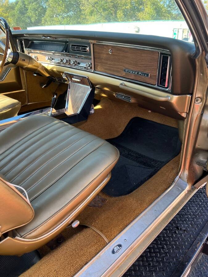 The Grand Prix came out in 1962, and this one is part of the second generation, available from 1965-68 but featuring new, more rounded styling in 1967 and concealed headlights along with louvered taillights. There’s no mention of which of the two available V8s, a 400-CID or a 428, this one has, so let’s presume the standard 400. You eagle eyes can tell us which one you see in the photos when you post comments on the car.