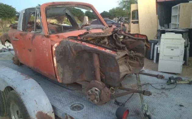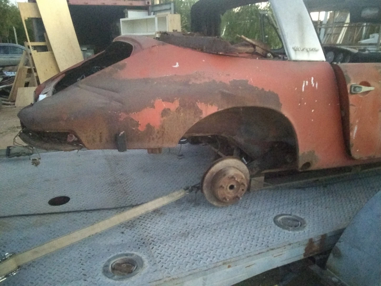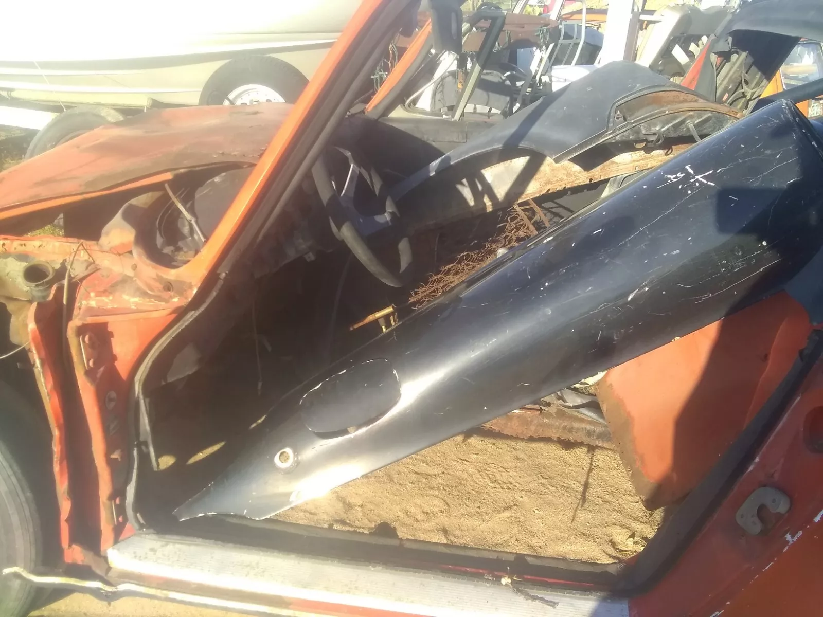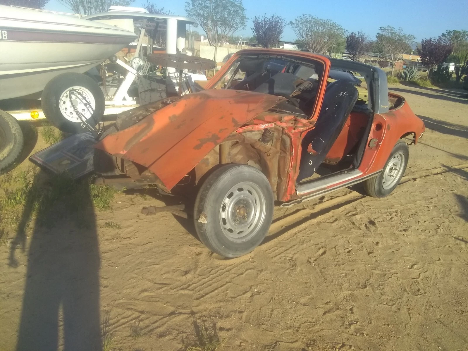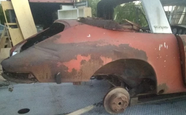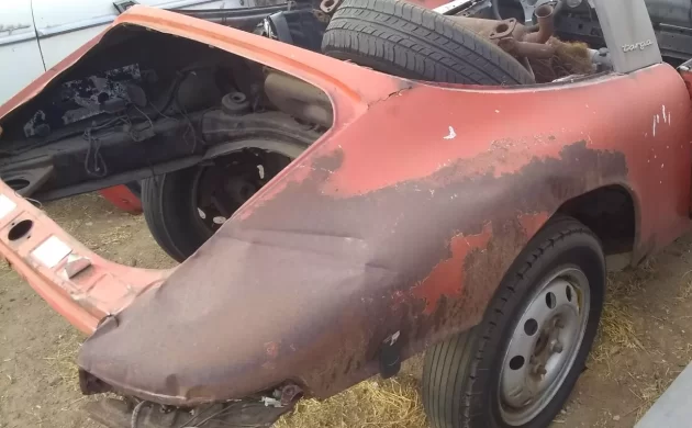 The Porsche 911 L was a short-lived model, offered in ’68 only – and in this case, it’s a Targa body style with a (permanently?) removable roof panel. According to Sportscar Market, of the 16,934 911s assembled in ’68, 6,672 were Targa models, and of that total, the 911 L comprised 5,134 copies. So rare? Not really, uncommon maybe. The seller tells us, this Porsche “WAS INVOLVED IN COLLISION IN 1973.” Further added is, “A VERY SPECIAL CAR IN PORSCHE HISTORY THAT WILL GO UP IN VALUE FAST. IT IS AROUND 150K + GOING UP FOR RESTORED DRIVER. A SHOW CAR OVER 350K. GREAT INVESTMENT OPPORTUNITY.” And then there’s some business about the Tangerine color, what little is still there, being rare. Instead of paraphrasing the listing, I’ll convey to you the seller’s assessment, “FRONT NOSE SECTION IS CUT, NO GLASS, WENT WINDOW FRAMES BENT, WHITE LEFT EXTRA DOOR SHELL INCLUDED TO REPLACE A DAMAGE ONE, ALL INTACT. NEED SOME REPAIR ON BOTTOM, NO REAR TRUNK LID, NO BUMPERS, NICE STAINLESS TARGA BAR, ON (sic) SPARE WHEELS, NO BRAKES, WHAT YOU SEE IS WHAT YOU GET, ROLLS AND STEARS (sic).” But other than that…this is basically a 1968 Porsche 911 L VIN for sale, oh, and with a modicum of “rare” Tangerine paint – that’s about it. The seller adds, “Not a rust bucket.”