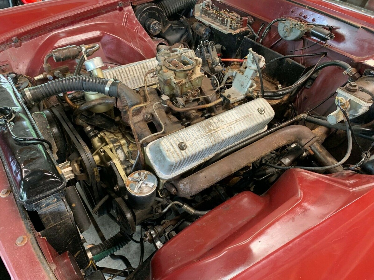 This car has a good stance and the color is really nice too!! It seems to need some freshening up in the motor compartment and the interior!! The fenders and door jams look to be a darker red or maroon and doesn’t match very good with the outside of the car!! It still probably floats like a cloud when going down the road!!
