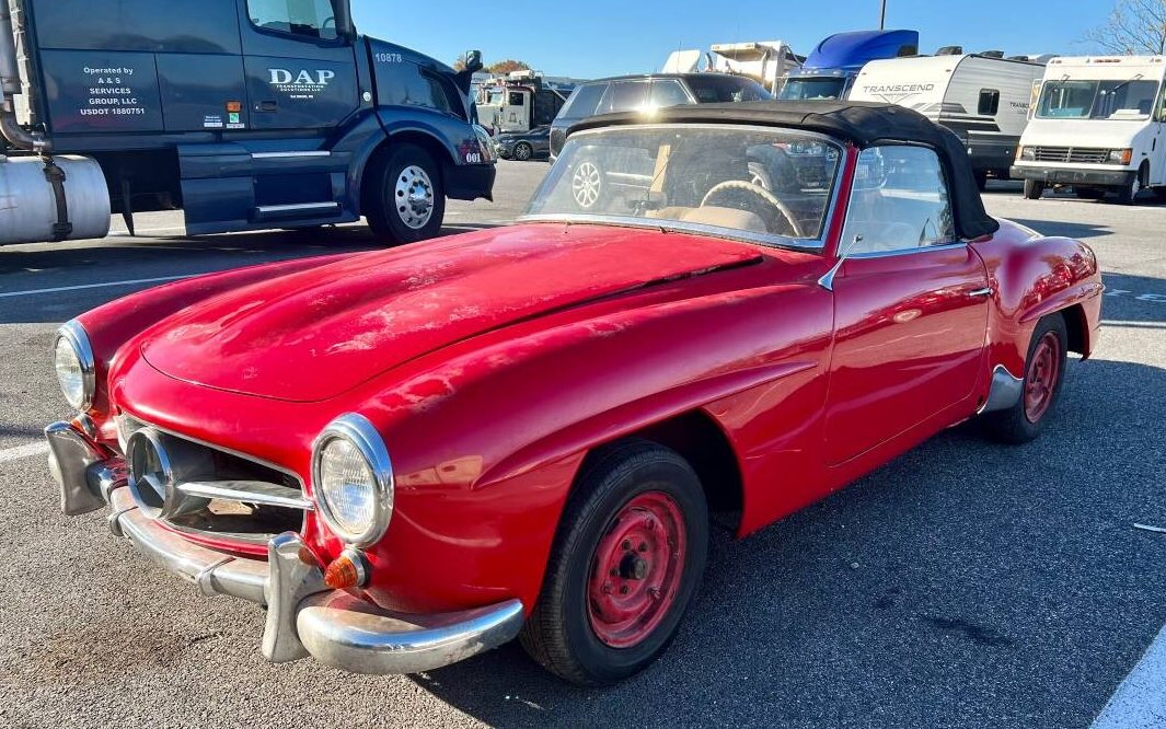 Old Mercedes-Benz 190SLs are no stranger to Barn Finds and quite a few are in more deleterious condition than this Rosedale, Maryland resident which is a 1957 example. Considered by the seller to be a “great restoration project“, this red two-seater is available, here on craigslist for a “pretty firm(?)” price of $47,000. A tip of the hat is due to T.J. for this discovery.