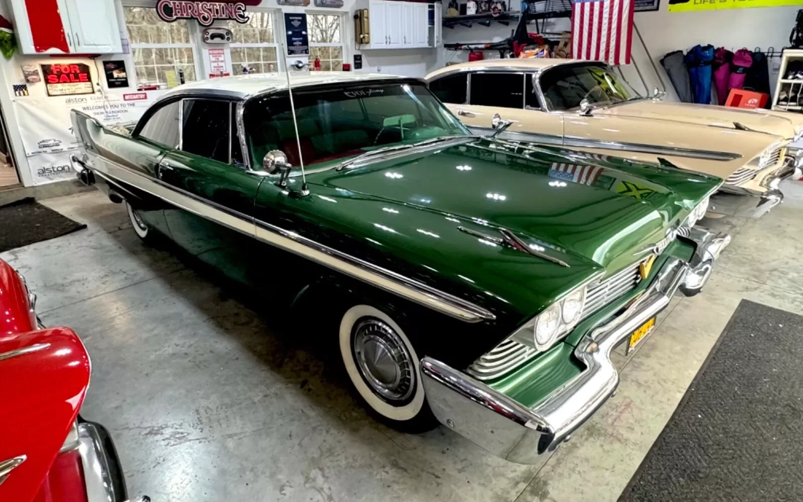 The 1958 Plymouth Fury was made famous by its “starring” role in the 1983 Stephen King horror/thriller movie, Christine. That was the name of a white-over-red Belvedere dressed up like a Fury that went on a killing rampage of naysayers. This ’58 Belvedere looks like Christine he movie car (with the dark-tinted windows) but painted white-over-dark green instead. This beauty is available here on eBay through a Fury enthusiast in Glencoe, Missouri. The asking price is $59,500.
