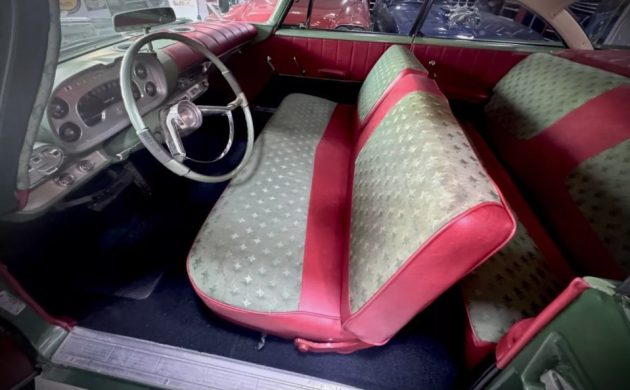 We don’t know if the paint combination or the interior is original (for example, would you have ordered green paint with a red/grey/black interior?). But it’s said to be a low mileage vehicle (less than 47,000 on the odometer) and runs like a top with a 318 cubic inch V8, single carburetor, and a 2-speed push-button automatic transmission. For $6,000 extra, the seller will throw in a dual intake manifold, twin carbs, and dual air cleaners.