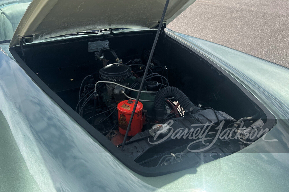 This groundbreaking roadster was name after its designer, Howard “Dutch” Darrin. Upfront you’ll find a powertrain that Dutch hadn’t envisioned, but the brass at the fledgling Kaiser-Willys Company decided on: a 161-cubic inch Willy’s F-head inline-six that generated 90 horsepower. It’s mated with a three-speed manual overdrive transmission. At 2,176 pounds, you could do 0-60 in :15, which was average performance for the day, but again, Darrin was hoping for better performance.