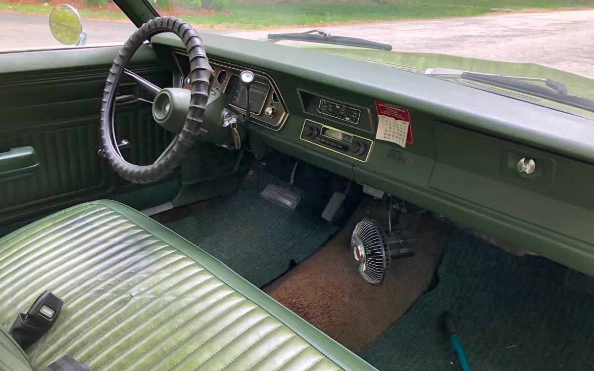 The seller says that the 76,000 miles on this Duster are documented and they have a clean title. The interior looks great but seeing tan/brown carpet in a green car is a little strange. The seats look nice both front and rear and I don’t see any cracks on the top of the dash. It seems unusual that Plymouth would make a green “Gold Duster” but they came in several colors both inside and out.