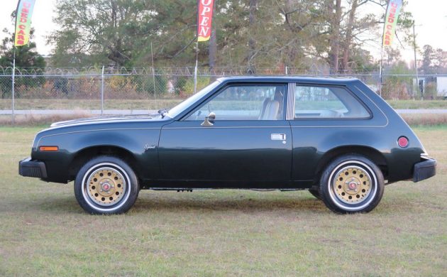 Cumberland Green Metallic is the color of this 1979 AMC Spirit Sedan; it isn’t black, even though it looks like that in the photos. It’s a dark green specified 9H on the body tag, which the seller included a photo of, along with dozens of other great photos. They have it listed here on eBay in Mullins, South Carolina, and they’re asking $7,999, or you can make an offer.