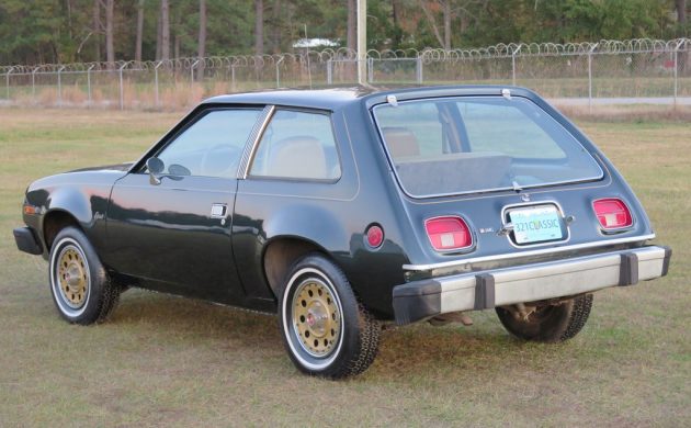 The sides seem to be showing some waves, but the seller says the “paint looks original,” and the body lines are “straight as an arrow,” so maybe it’s just me. The Gremlin shape is unmistakable here as well. Here’s what the rear cargo area looks like, or some of it. I’m not sure what the wheels are from; they aren’t shown in any AMC brochure from 1979 that I saw while doing research on this car. They say this car came to their South Carolina showroom from California, so hopefully it’s solid.